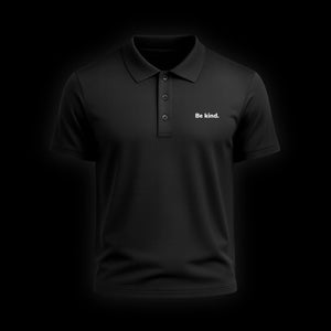 A timeless polo with a message that matters: Be kind. This version features a classic collar and three-button placket, cut from a thin, breathable fabric that’s soft from first wear. Black with a clean white chest print, it’s minimal, sharp, and easy to pair with anything. Dress it up or down and carry kindness into every room.