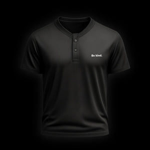 A clean, modern polo with a simple reminder that never goes out of style: Be kind. This thin, breathable blade-collar design feels soft all day and pairs effortlessly with jeans, joggers, or chinos. The black fabric and crisp white chest print keep it minimal and versatile; smart enough for meetings, relaxed enough for everyday. Wear it as your daily nudge to lead with kindness.